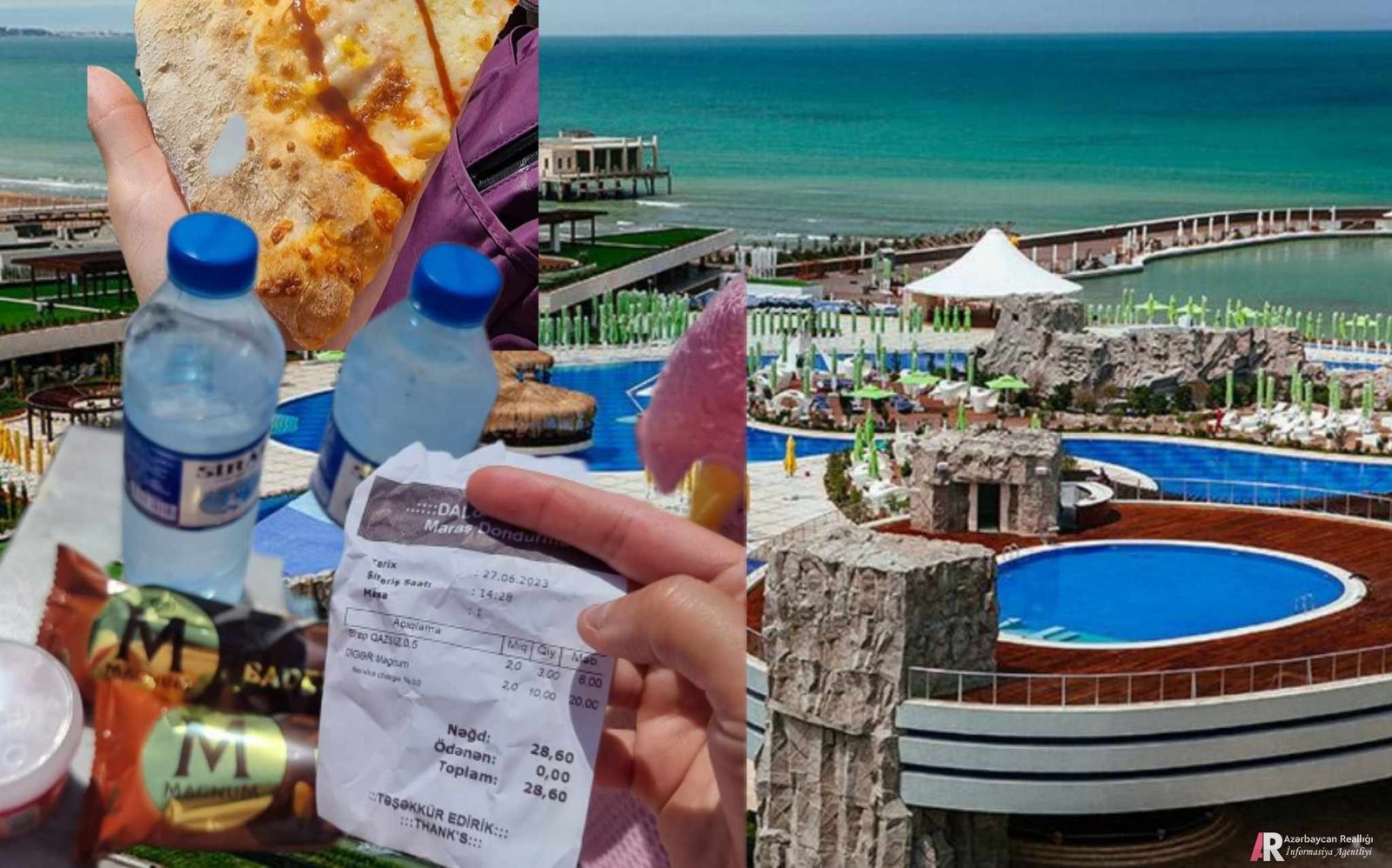 Sizə "Dalğa Beach" Aquapark Resort-dan danışım. İlk dəfə olurdum. Girişi bazar, 21 əsrdə içəri girmək üçün uzun bir növbədə gözləməlisən. Adam başına 25 manat+10 manat dolaba pul aldıqdan sonra, giridik içəri. (saat 1-dən sonra 30 manat alınır) (Ordan dənizə keçmək üçün də ayrı pul ödəməlisən) İndi isə oturmaq problemli. Boş yer yoxdur. Deməli hər kəsi qəbul edirlər içəri limit nəzərə alınmır. Deyir xoşundurda budur, deyilsə də budur. Hələ qapıda sumkaların içini yoxlayanlar bir ayrı aləmdir, açıb başını soxur baxsın nəsə gətirmişəmmi...