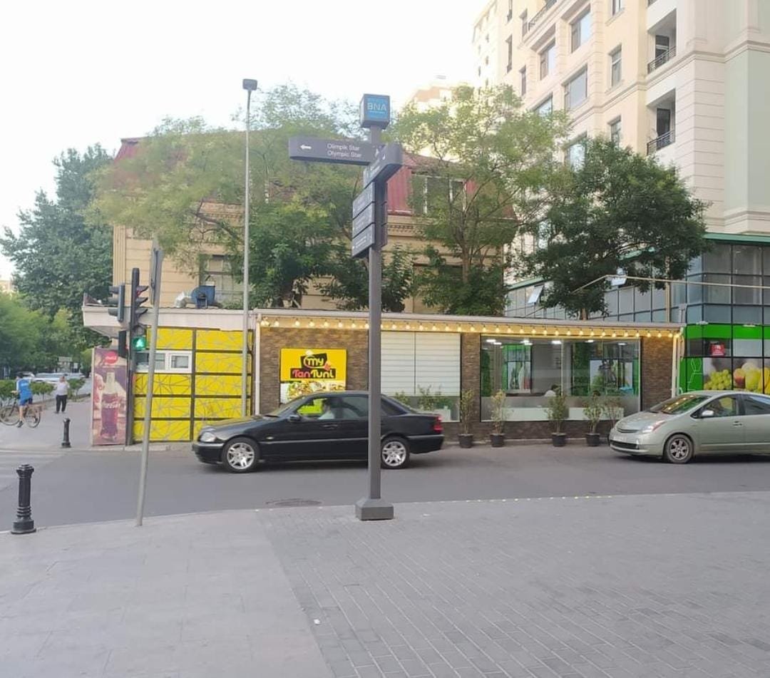 Bu fotoda göstərilən kafe isə Həsən Əliyev və Xan Şuşinski küçələrinin kəsişməsində, 3-4 böyük ağacın yerində tikilib. Daha doğrusu, ağacların gövdəsi obyektin içində qalıb. Amma burada kafe açmaq yerinə, dediyimiz kimi, kiçik park salmaq olardı.