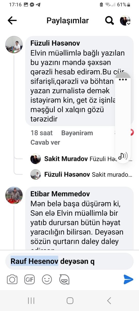 Bundan əlavə şəkillərdən göründüyü kimi, bir çox insanlar yaltaqlıq edərək Elvin Abbasovu tərif yağışına tutublar. həyatını məddahlıq üzərində quran, yaltaqlığı həyat tərzinə çevirən yaltaq insanlar Elvin Abbasovu elə müdafiə edirlər ki, sanki ovsunlanıblar. Bu yaltaqlığı edənlərin haqq-ədalət, vicdan, insanlıq yadlarına düşmür.