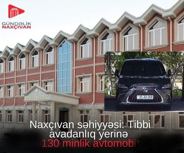 Naxçıvan MR Səhiyyə Nazirliyi bu yaxınlarda dövlət büdcəsi hesabına təxmini dəyəri 130 min manat olan „Lexus“ markalı avtomobil alıb. Həmin avtomobil aprel ayından bəri nazir səlahiyyətlərini müvəqqəti icra edən Samiq Sadıxovun xidmətinə verilib. Lakin, nazirlik maliyyə çatışmazlığını bəhanə gətirərək, dövlət xəstəxanalarını lazımi tibbi avadanlıqlarla, vacib dərmanlarla təmin etmək istəmir.