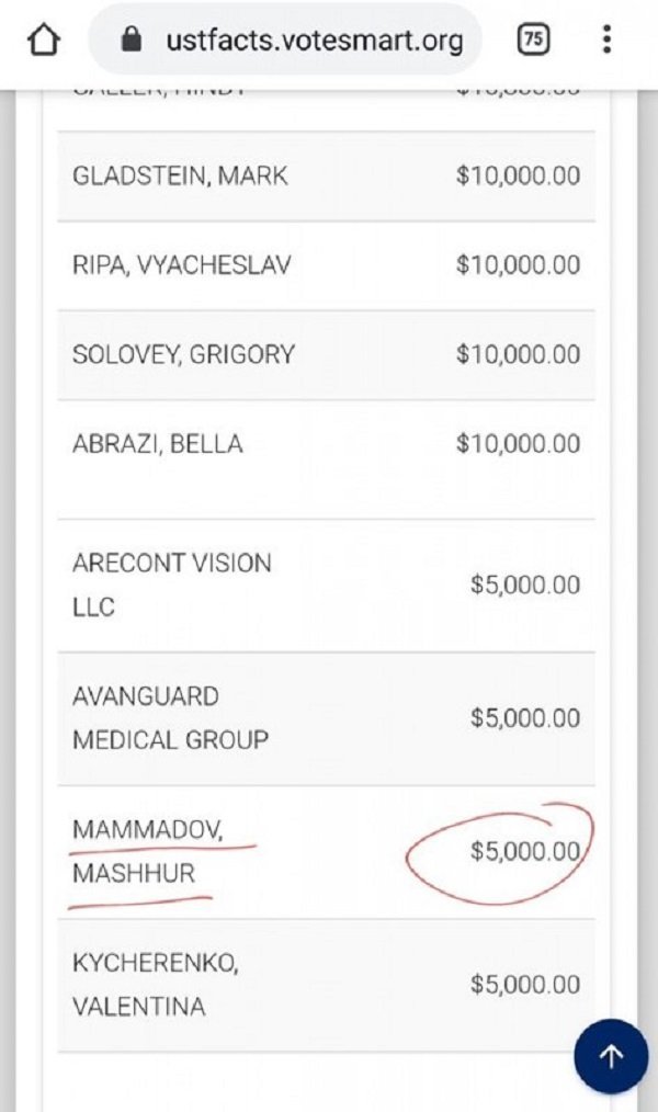 "YAP-ın deputatlığa namizədi, "Embawood' şirkətinin həmtəsisçisi Məşhur Məmmədov 2012-ci ildə Nyu-Yorkun senatorlarından olan David Storobinin seçki kampaniyasına maddi dəstək verib. İşadamı əyalət seçkilərinə qatılmış respublikaçı namizədin seçki fonduna 5000 dollar pul köçürüb. David Storobin 1979-cu il təvəllüdlülüdür, ixtisasca vəkildir.