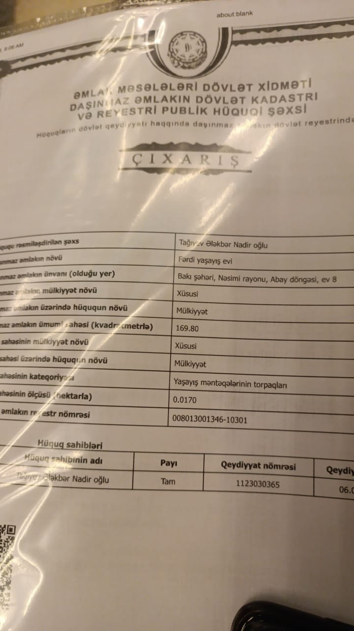 Vətəndaş bildirir ki, həm evi, həm də torpağı özəlləşdirib. Elə şirkətlə aralarındakı problemə də bu səbəb olub. Şirkət iddia edir ki, torpaq vətəndaşa deyil, dövlətə məxsusdur. Bu səbəbdən də “Olympus MMC” məsələ ilə əlaqədar məhkəməyə də müraciət də edib.