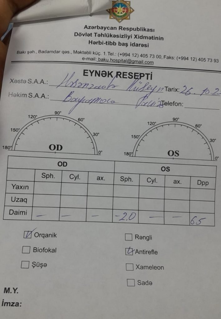 Bu günlərdə isə redaksiyamıza Bakı şəhəri, Nərimanov rayonu, ev-36, mən-34 ünvanında yaşayan Rzayeva Minaxanım Balaca qızı tərəfindən video-müraciət daxil olub. Adı çəkilən bu xanım təqdim etdiyi video-müraciətində qeyd edir ki, “Nəvəm Həsənzadə Hüseyn Zaur oğlunun həqiqi hərbi xidmətə çağırış yaşı çatdığı üçün o, ilk əvvəl Səfərbərlik və Hərbi Xidmətə Çağırış üzrə Dövlət Xidmətinin Nərimanov rayon idarəsi tərəfindən tibbi müayinədən keçirildi və onda heç bir problemin olmadığı bildirildi. Belə bir səbəbdən də ona 23 oktyabr 2023-cü il tarixdə hərbi xidmətə getmək haqda çağırış vərəqəsi verildi, hətta Hüseyn Həsənzadəyə məxsus mobil telefona “N” saylı hərbi hissəyə düşməsi barədə “SMS” də gəldi. Elə ki, 23 oktyabrda SHXÇDX-nin Nərimanov rayon idarəsində olduq, o halda nəvəmi hərbi xidmətə deyil, məhz bu idarənin rəisi polkovnik Aqşin Əliyevin verdiyi tapşırıqlar əsasında təkrar müayinəyə göndərdilər. Müayinə zamanı həkimlər nəvəmin sol gözünə maye halında dərman tökdülər, az sonra isə bildirdilər ki, “Hüseyn Həsənzadənin gözündə problem var”. Bir sözlə, belə bir oyundan başımız çıxmadı. SHXÇDX-də təkrar müayinədən sonra nəvəmə 6 ay müddətinə möhlət vaxtı verdilər. Baxmayaraq, bir müddət bundan öncə Hüseyn Həsənzadə Zərifə Əliyeva adına Göz Xəstəlikləri İnstitunda gözündən müayinə olunmuşdu və ona hərhansı problemin olmadığı haqda rəsmi sənəd də verilmişdi.