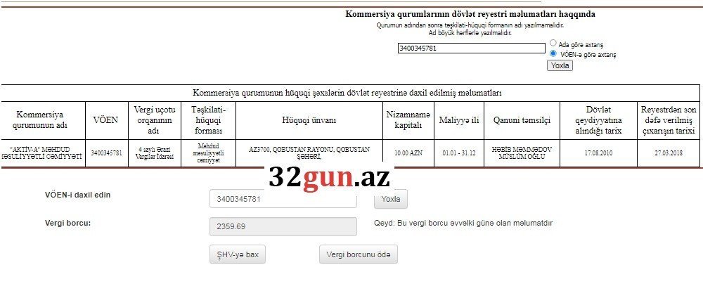 Bildirək ki, nizamanmə kapitalı 10 AZN olan "AKTİV-A" MMC olan şirkətin qanuni təmsilçisi Həbib Məmmədov Müslüm oğludur.