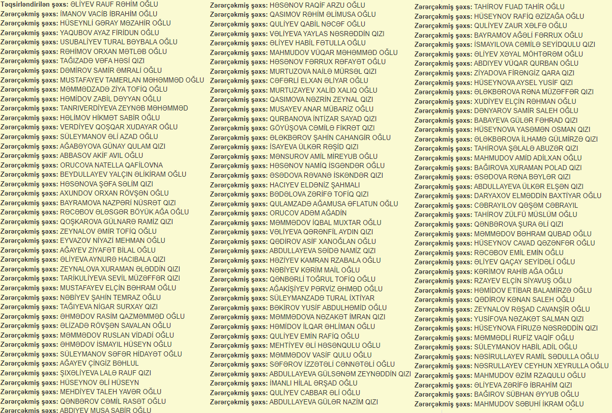 Zərərçəkmiş şəxslərin siyahısını təqdim edirik: