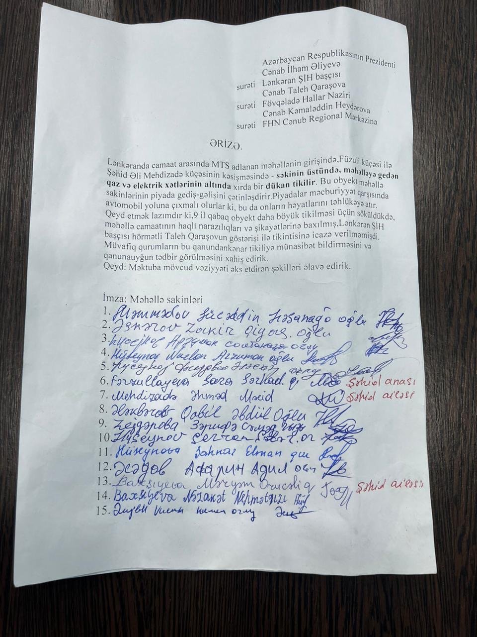 Qeyd edək ki, sakinlərinin verdiyi məlumata görə, dükanı tikən Lənkəran Şəhər icra hakimiyyətinin başçı Taleh Qaraşovun müavini – Sosial-iqtisadi inkişafın təhlili və proqnozlaşdırılması şöbəsinin müdiri Mikayıl Cəfərzadənin əmisidir.