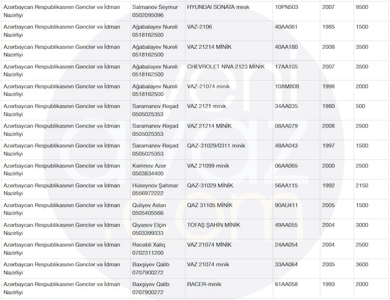 Yeniavaz.com qurumun açıqladığı məlumatlara istinadən bildirir ki, Gənclər və İdman Nazirliyinə məxsus 15 ədəd nəqliyyat vasitəsi hərrac vasitəsiylə satışa çıxarılıb.