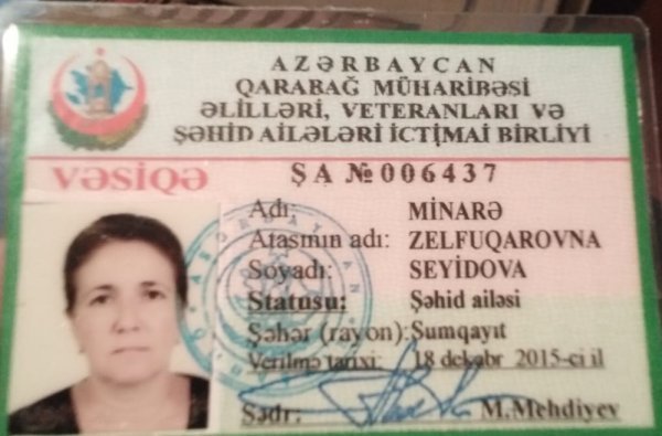 Şəhid Ruslan Seyidovun həyat yoldaşı Minarə Seyidova Tribunainfo.az-a şikayətini bildirib.