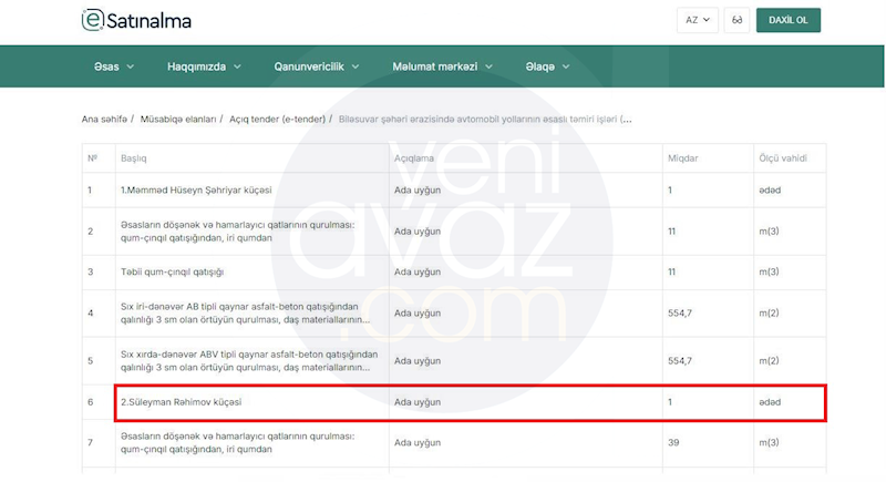 bər verir ki, tender müsabiqələri Biləsuvar şəhəri ərazisində avtomobil yollarının əsaslı təmiri ilə bağlıdır.