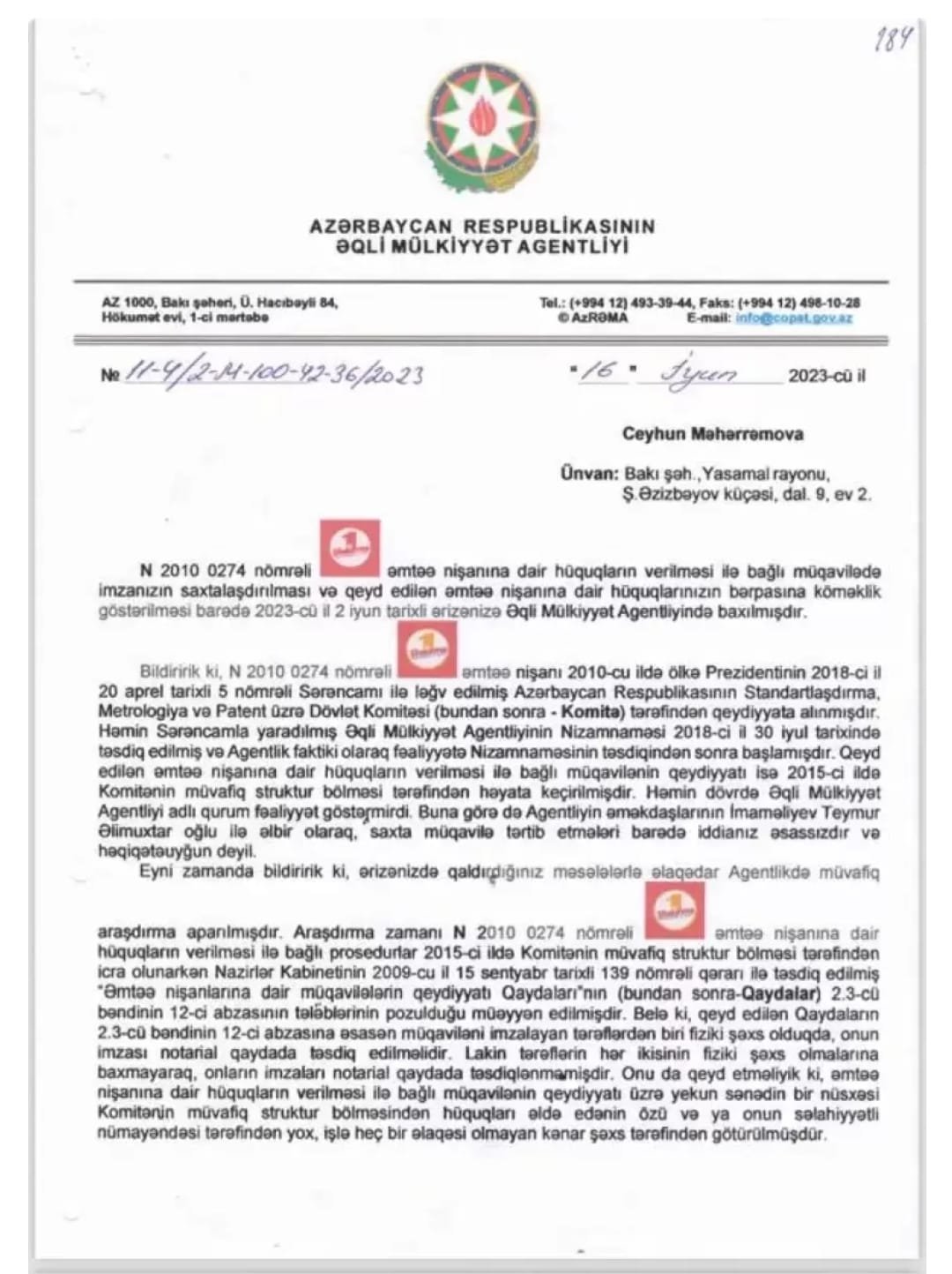 Bundan əlavə, Ümumdünya Əqli Mülkiyyət Təşkilatının Madriddə (İspaniya) yerləşən mənzil-qərargahı 3 mart 2010-cu il tarixli 2010 0274 reyestr nömrəli ŞAURMA №1 nömrəli əmtəə nişanı hüququn Ceyhun Məhərrəmova aid olduğunu təsdiq edən cavabı elektron məktub ilə göndərib. Həmçinin bu hüququn 2023-cü ilin oktyabr ayının sonuna qədər Belarus, Çin, İran, Qazaxıstan, Ukrayna və Rusiya ərazisində də tanındığı təsdiqlənib. Bu sənədlərin məzmunu heç bir şübhə yeri qoymur ki, “təşəbbüskar” Teymur İmaməliyev nəinki mənimsənilmiş əqli mülkiyyət hüququnu itirəcək, həm də ola bilsin, sənəd uydurmaq və dövlət zəmanəti altında olan əmlakın mənimsəməsinə görə bir neçə ilə qədər azadlığınından məhrum olacaq. (Cumhuriyyet)