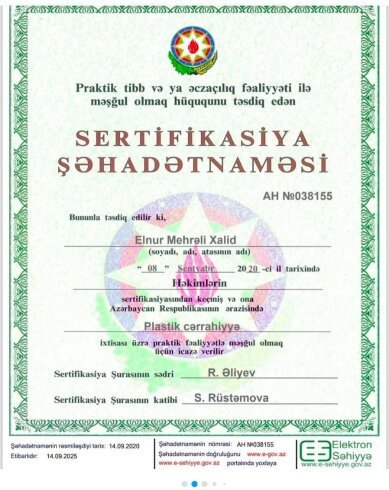 Ancaq buna baxmayaraq, həmin tarixdən sonra da plastik cərrahlara Səhiyyə Nazirliyinin Sertifikasiya Komissiyası tərəfindən sertifikatlar verilməkdə davam edib. Bəzi plastik cərrahların sosial şəbəkədə paylaşdıqları sertifikatlar da bunu təsdiq edir. Maraqlıdır, 2010-cu ildə Həkimləri Təkmilləşdirmə İnstitunda plastik cərrahlar üçün kursların qadağan edilməsindən sonra Sertifikasiya Komissiyası hansı əsasla müxtəlif sahə həkimlərinə plastik cərrah sertifikatı verib? İlqar Qasımov, eləcə də digər vəzifəli şəxslər bu sertifikatları imzalayarkən, qanunvericiliyin tələblərinə əməl ediblərmi? Həmin həkimlər doğrudan da rezidentura təhsili aldıqdan sonra sertifikat əldə ediblər, yoxsa bu məsələdə də ciddi saxtakarlığa yol verilib? Bu sualların cavabı hələ də açıq qalıb.