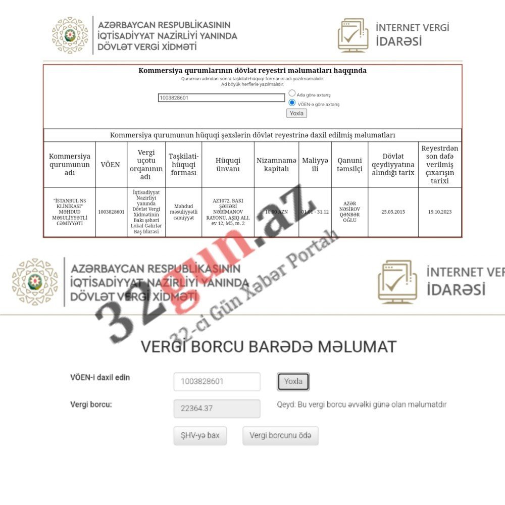 İstanbul NS Klinikasının dövlətə vergi borcu olması üzə çıxıb.
