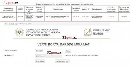 32gun.az-ın əldə etdiyi məlumata görə sözügedən QSC-nin hazırki vergi borcu 12 milyon manata yaxındır. (11891188.48AZN)