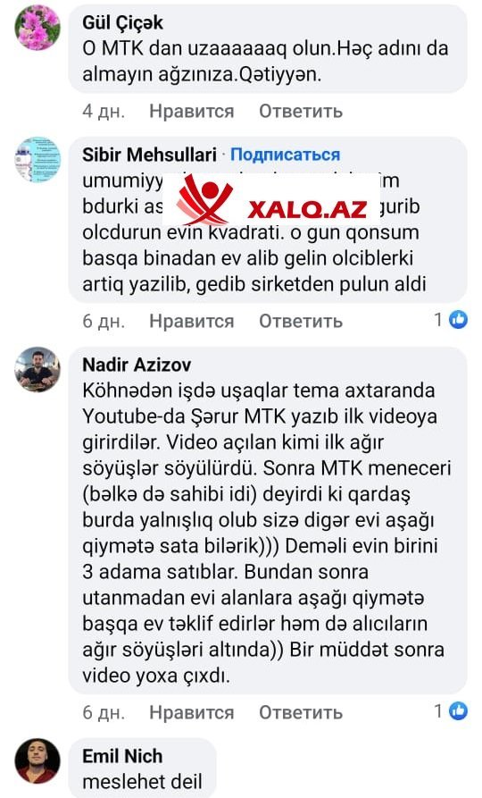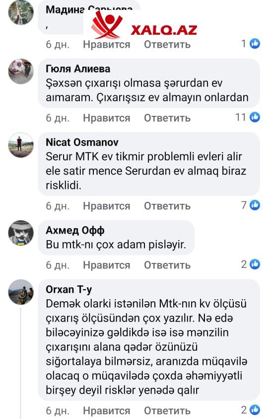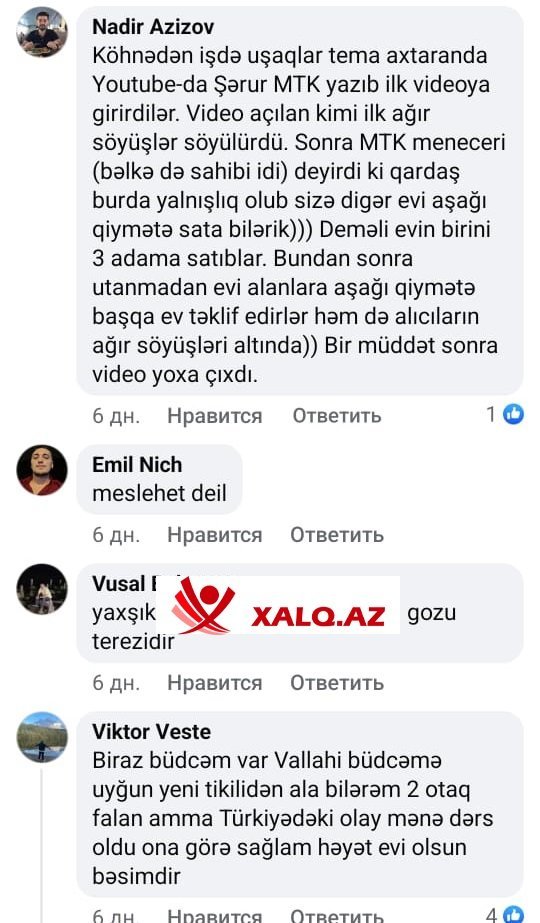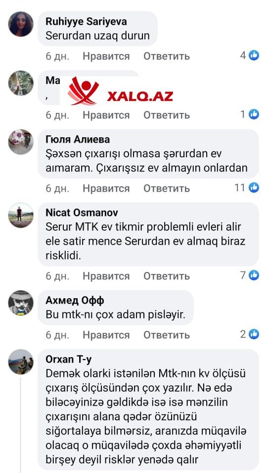 Digər rəydə hüquqşunas çağırış edir ki, Şərur MTK şikayətlər çoxdur,gələcəkdə problem yaşamamaq üçün oradan ev almayın.